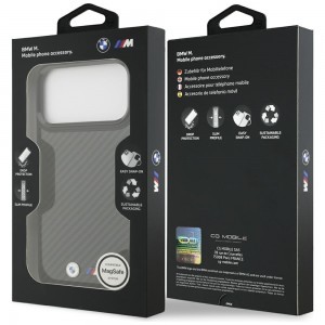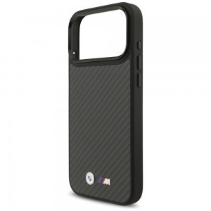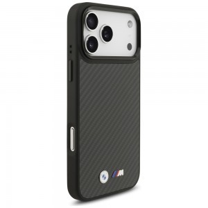 - A tok hátlapját a jellegzetes, precízen szőtt szénszálas minta díszíti, amely nem csak látványos, de rendkívül strapabíró is, azonnal felismerhetővé téve a BMW M sportos örökségét. A matt fekete felület kifinomult megjelenést kölcsönöz, miközben biztos fogást garantál.