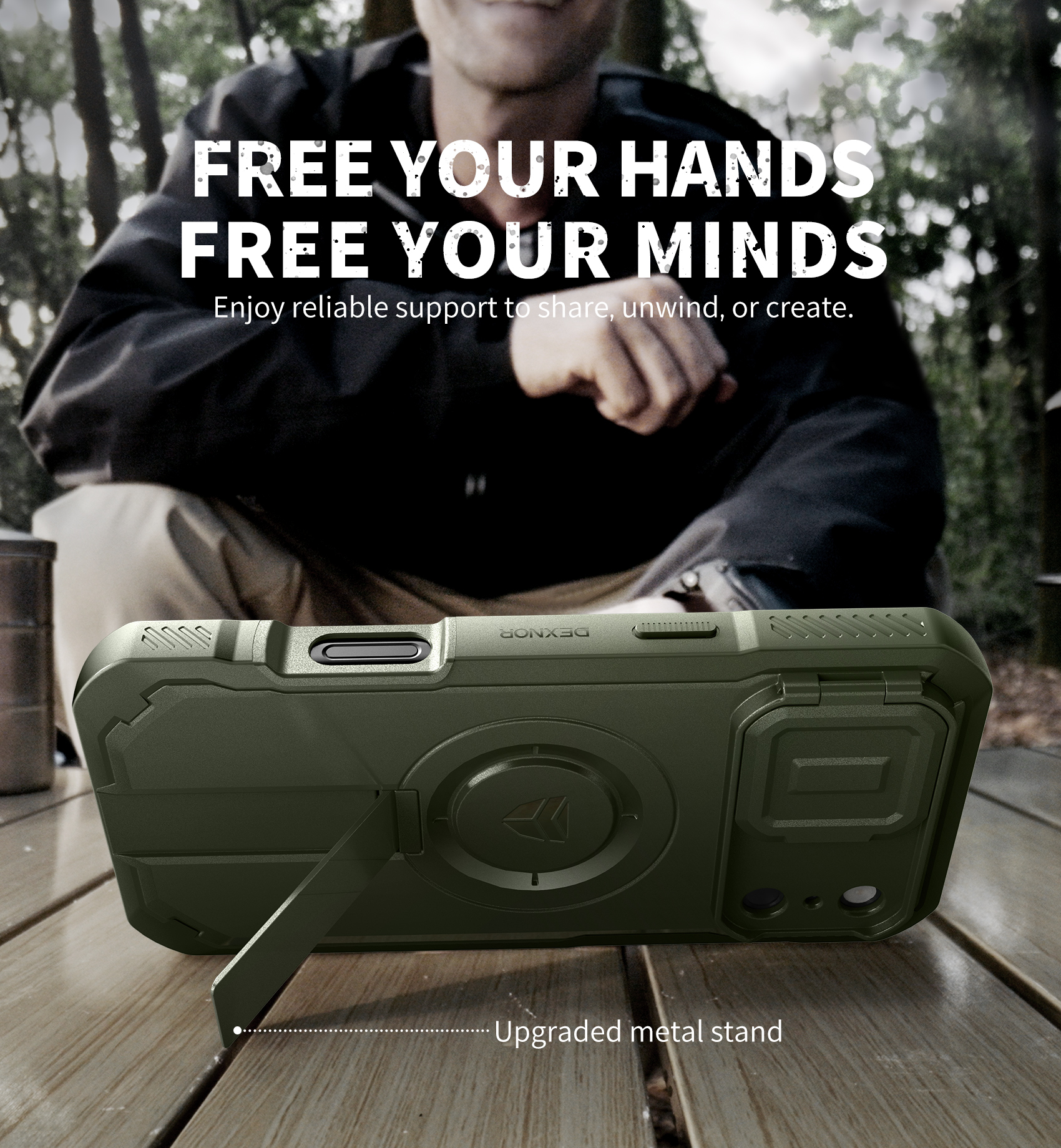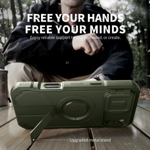 Az iPhone 17 Pro Max Dexnor MagSafe ütésálló tok zöld színben a funkcionalitás és a páratlan védelem szinergiáját kínálja. Készen állsz arra, hogy telefonodat a legkeményebb kihívásoknak is ellenálló pajzzsal lásd el, miközben élvezheted a modern technológia minden előnyét, mint a MagSafe kompatibilitás és a kihajtható állvány.