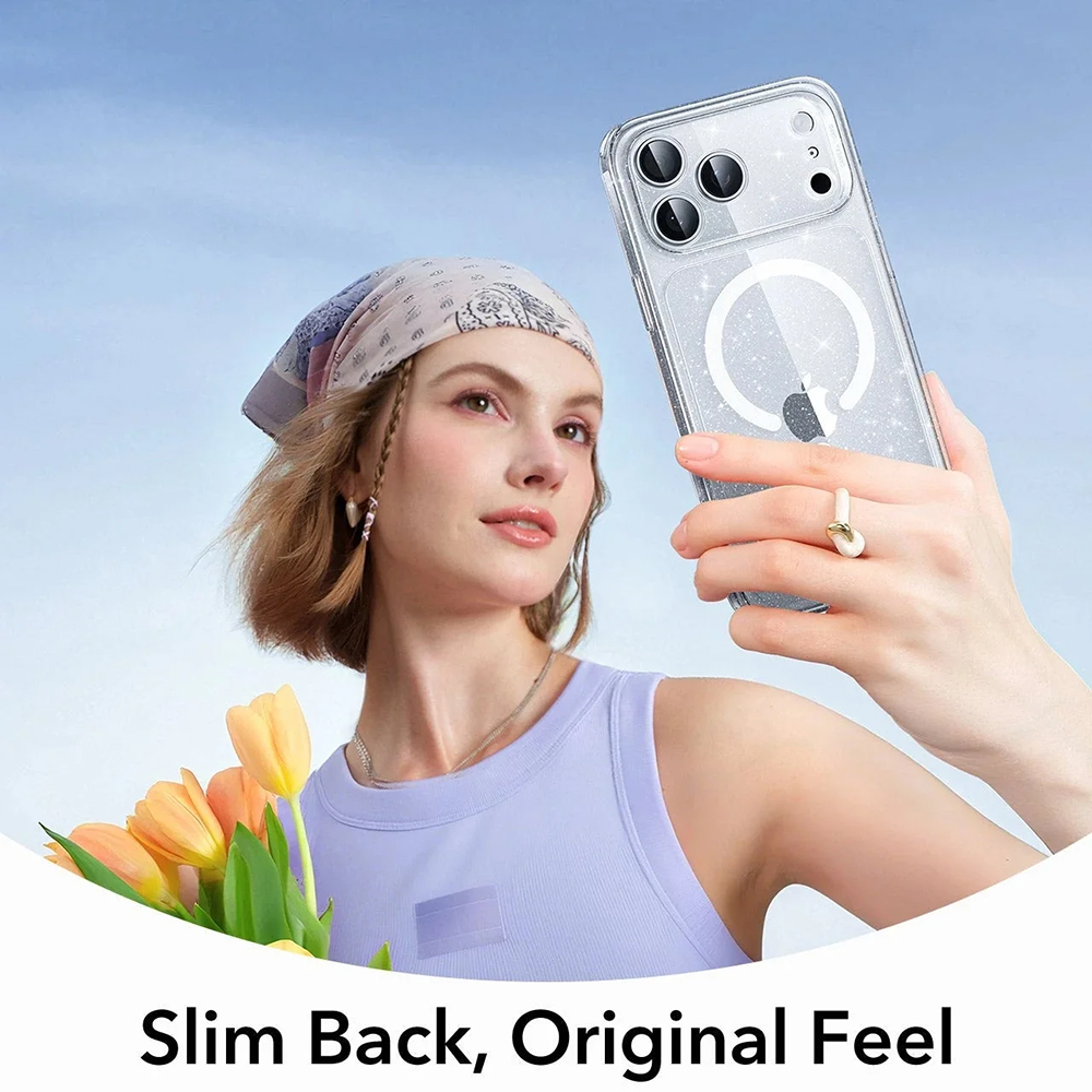 - Átlátszó csillogó design: Az exkluzív átlátszó, csillogó design kiemeli iPhone 17 Pro Max készüléked eredeti szépségét és Apple logóját, miközben egy csipetnyi ragyogást és egyediséget is ad neki.