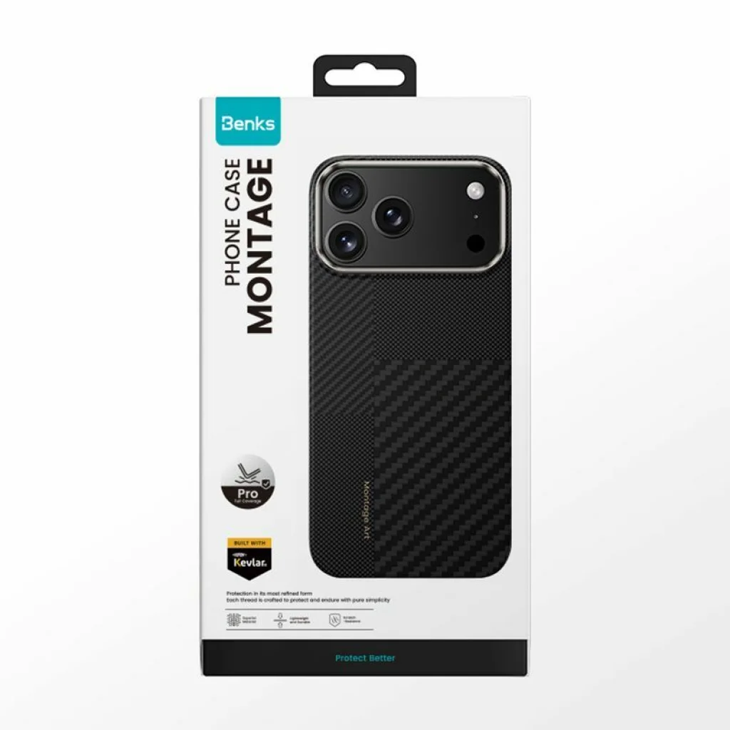 A Benks Montage tok a legapróbb részletekig kidolgozott védelmet kínál telefonjának. A DuPont™ Kevlar® Fiber szálas kialakítás a 600D és 1500D szálak kombinációjával kivételes tartósságot és rendkívül könnyű szerkezetet biztosít. Ez a modern anyag garantálja a maximális ellenállást a karcolásokkal és ütődésekkel szemben, anélkül, hogy vastaggá vagy nehézzé tenné készülékét.