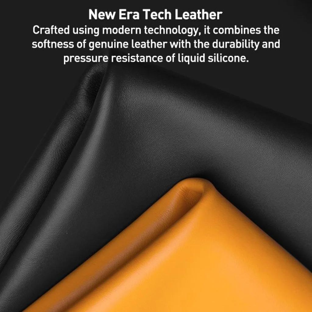 - Innovatív „techno-bőr” anyag: A valódi bőr luxus érzését kombinálja a folyékony szilikon robosztus védelmével.