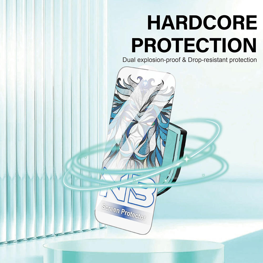 - Robbanás- és törésálló: Kettős, megerősített védelmet nyújt a durva behatásokkal szemben, megóvva az eredeti kijelzőt még kalapácsütések esetén is.