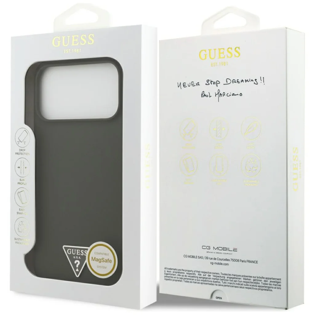 Az iPhone 17 Pro Max Guess Silicone Triangle Logo MagSafe tokkal nem csupán egy megbízható védelmet nyújtó kiegészítőt vásárolsz, hanem egy divatos darabot, amely tökéletesen kiegészíti mindennapi stílusodat. Biztos lehetsz benne, hogy telefonod nem csak biztonságban lesz, de a Guess eleganciájával is feltűnik. Ahogy Paul Marciano is vallja: "Never Stop Dreaming!" – soha ne hagyd abba az álmodozást, válassz prémium minőséget és stílust!