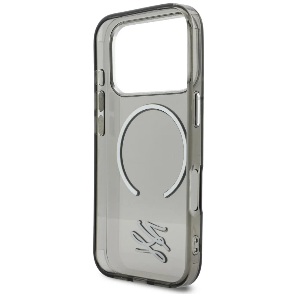 Emelje ki iPhone 17 Pro Max készülékét a luxus és a kifinomult design jegyében a Karl Lagerfeld IML KL Script Logo MagSafe tokkal! Ez a prémium minőségű, félig áttetsző fekete tok nem csupán stílusos kiegészítő, hanem a tökéletes védelem megtestesítője is készülékének, amely hűen tükrözi a divatház eleganciáját és minőségét.