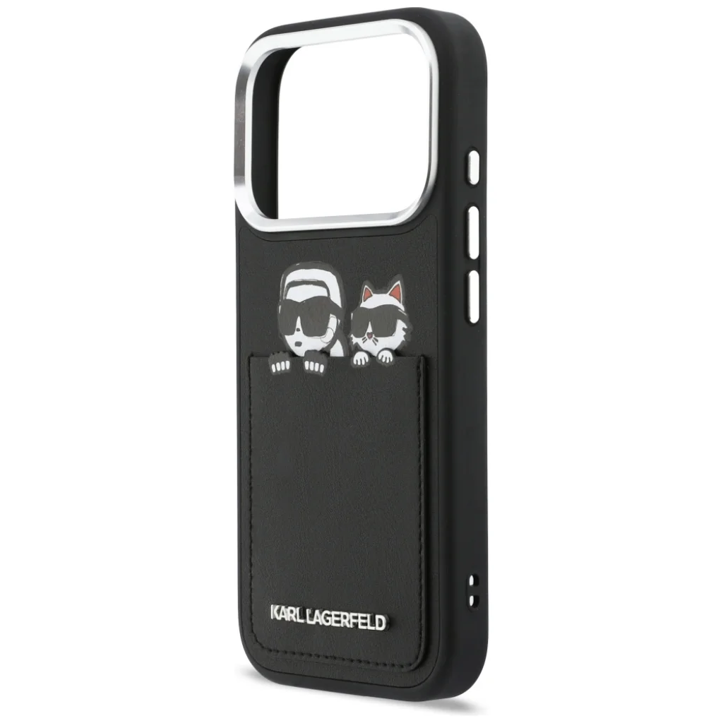 A Karl Lagerfeld Karl & Choupette Nyomtatott & Zsebes sorozat a tökéletes megoldás azoknak, akik a funkcionalitást és a kivételes stílust keresik az okostelefonjukhoz. Ez az egyedi kollekció nemcsak a készüléke biztonságát garantálja, hanem egyedi jelleget ad neki, figyelemfelkeltő dizájnnal. Az exkluzív Karl Lagerfeld tok az eleganciát ötvözi a modern stílussal. A tok hátulja magas minőségű öko bőrből készült, ami egyedi karaktert kölcsönöz neki, miközben tartósságot és kényelmes használatot biztosít. A hátulját a Choupette macska és Karl Lagerfeld jellegzetes nyomtatott képe díszíti, divat által inspirált jelleget adva az kiegészítőnek. Az egész dizájnt az alumínium kamera keret és az ezüst színű oldalsó gombok teszik teljessé, kihangsúlyozva a termék luxus jellegét. Az alján egy fém "KARL LAGERFELD" felirat található, ami eleganciát és egyedi stílust ad. A pontos méreteknek köszönhetően a tok hatékonyan csillapítja az esetleges eséseket, miközben teljes hozzáférést biztosít a portokhoz és gombokhoz. A tok oldala elég rugalmas az egyszerű behelyezéshez és eltávolításhoz, de mindenekelőtt tökéletesen védi az eszköz keretét az ütések vagy esetleges sérülések ellen. Enyhén megemelt külső élek védik a képernyőt a sérüléstől, míg a kamera lencse körüli megemelt élek védelmet nyújtanak a repedés vagy karcolás ellen. További előnye a tok hátulján elhelyezett praktikus zseb, amely lehetővé teszi egy fizetési kártya, dokumentum vagy jegy kényelmes tárolását, így mindig kéznél tarthatók a legfontosabb dolgok. A tok a Karl Lagerfeld márka engedélyével készült. Technikai adatok: Gyűjtemény: Karl Lagerfeld Karl & Choupette Nyomtatott & Zsebes, Típus: Kemény tok, Anyag: Öko bőr / TPU / PC, Szín: Fekete, Kompatibilitás: iPhone 17 Pro Max.