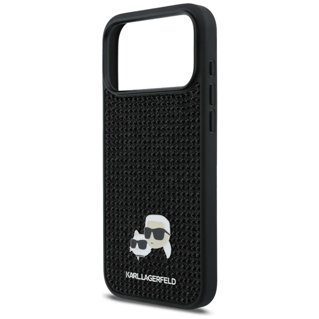 A Rhinestones Karl&Choupette Pin kollekció az elegancia és a luxus kombinációja. Az tokot strasszok díszítik, és felületén egy tű látható, amely Karl Lagerfeldet és szeretett macskáját, Choupette-et ábrázolja. Az tok alján egy finom KARL LAGERFELD logó található, amely teljessé teszi az általános dizájnt.