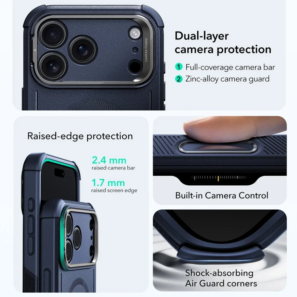 Az ESR Cyber Armor kitámasztós tok az iPhone 17 Pro Max készülékhez tökéletes választás azok számára, akik maximális védelmet, sokoldalú funkcionalitást és elegáns, díjnyertes megjelenést keresnek egyetlen termékben.