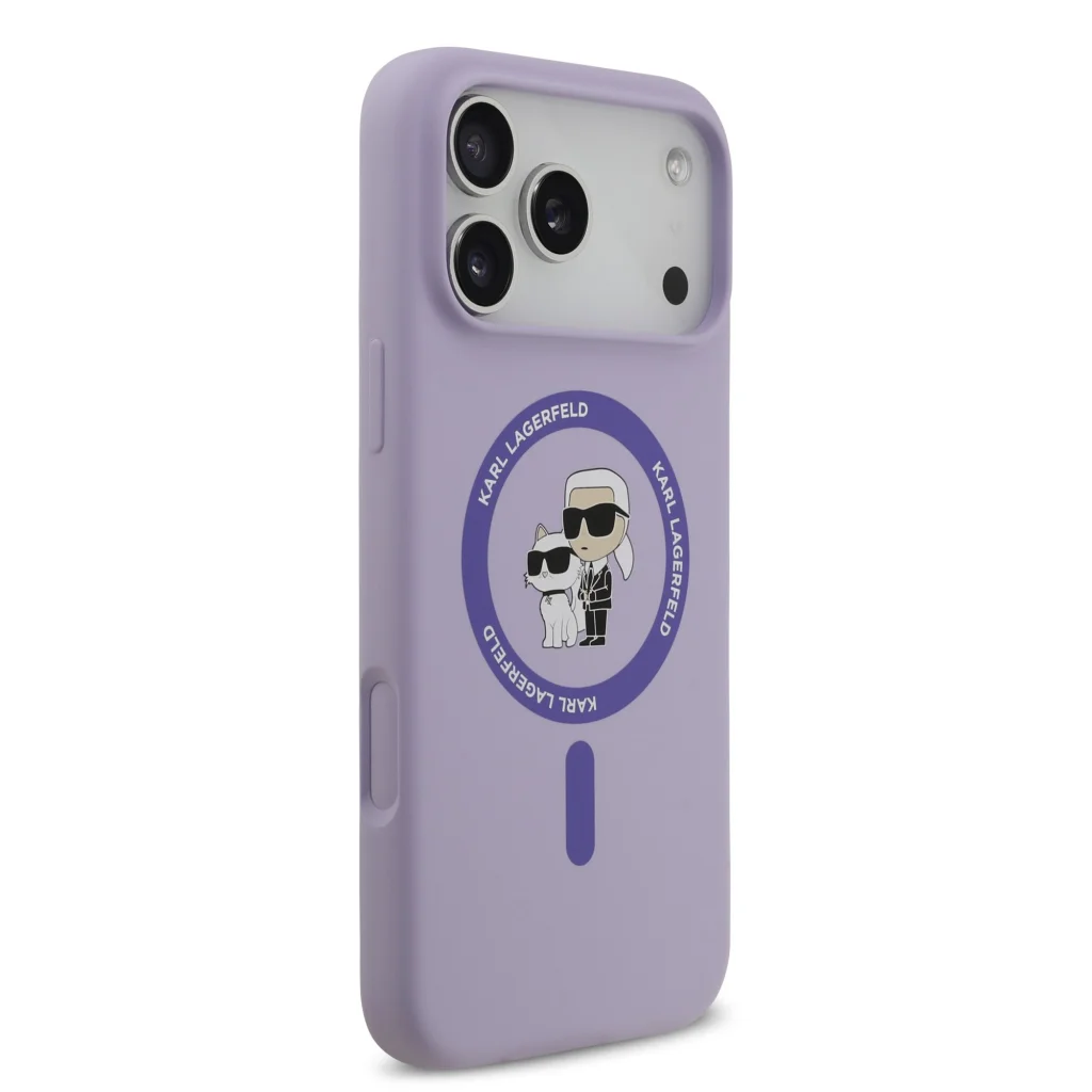 Karl lagerfeld liquid silicone karl és choupette magsafe iphone 17 pro max tok: elegancia és védelem lila köntösben