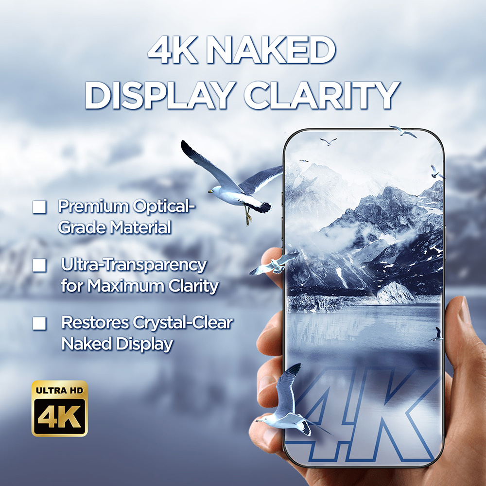 - 4K naked display clarity: Élvezze a tiszta, eredeti kijelző élményt prémium optikai minőségű anyagoknak és az ultra-átlátszóságnak köszönhetően. Kristálytiszta képet biztosít, hihetetlen részletgazdagsággal.