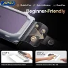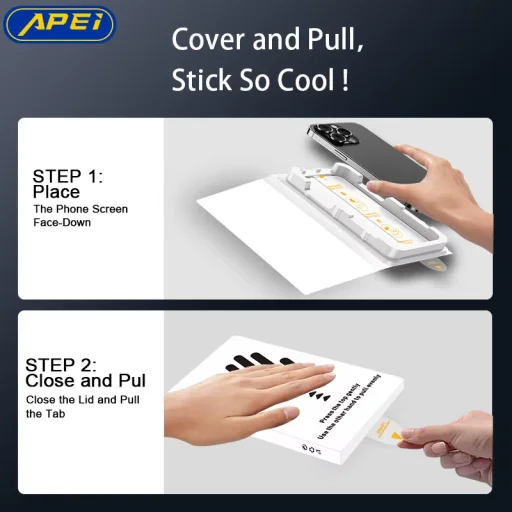 - Egyszerű és hibátlan felhelyezés: Az exkluzív APEI Magic Box felhelyező keretnek köszönhetően a fólia felrakása kezdők számára is gyerekjáték. Csak helyezze bele a telefont, zárja le a fedelet, húzza meg a fület, és kész is! Buborék- és pormentes, gyors tapadású eredmény garantált.