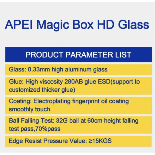 - Anyag: Prémium edzett üveg (0.33mm vastag, magas alumínium tartalmú üveg) + Japán AB ragasztó