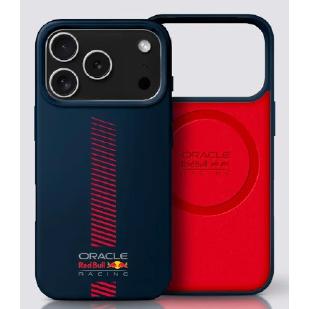 A tok sötétkék külső borítása elegáns megjelenést kölcsönöz, amelyet a Red Bull Racing hivatalos színei és logója tesznek egyedivé. A hátlapon található merész, vörös "Powerbar" csíkok a sebességet és az erőt szimbolizálják, tükrözve a versenypályák adrenalinnal teli hangulatát. A belső, élénkpiros felületen diszkréten dombornyomott ORACLE Red Bull RACING logó pedig minden pillanatban emlékeztet a csapat örökségére. Ez a tok nem csupán egy védőburkolat, hanem egy stílusnyilatkozat.