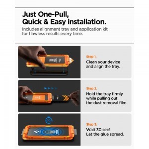 A Spigen AlignMaster szerelési készlet forradalmasítja az üvegfólia felhelyezését. Az innovatív, egyhúzós mechanizmus (Just One-Pull) és az automatikus por eltávolítási és pozicionálási rendszer garantálja a tökéletes, buborék- és elcsúszásmentes illeszkedést már az első próbálkozásra. Felejtse el a bonyolult és frusztráló felhelyezési folyamatokat!