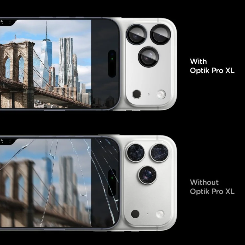 A Spigen Optik Pro XL "EZ Fit" a teljes kamera sziget alapos védelmét biztosítja okostelefonod számára. 9H keménységű edzett üvegből készült, hatékonyan védi a karcolásoktól, ütésektől és a mindennapi használat okozta kopástól, miközben teljes átlátszóságot és a képek minőségét megőrzi. Az EZ Fit szerelőkeret segítségével a telepítés gyors, precíz és problémamentes - tökéletes illeszkedést nyújt speciális eszközök nélkül.