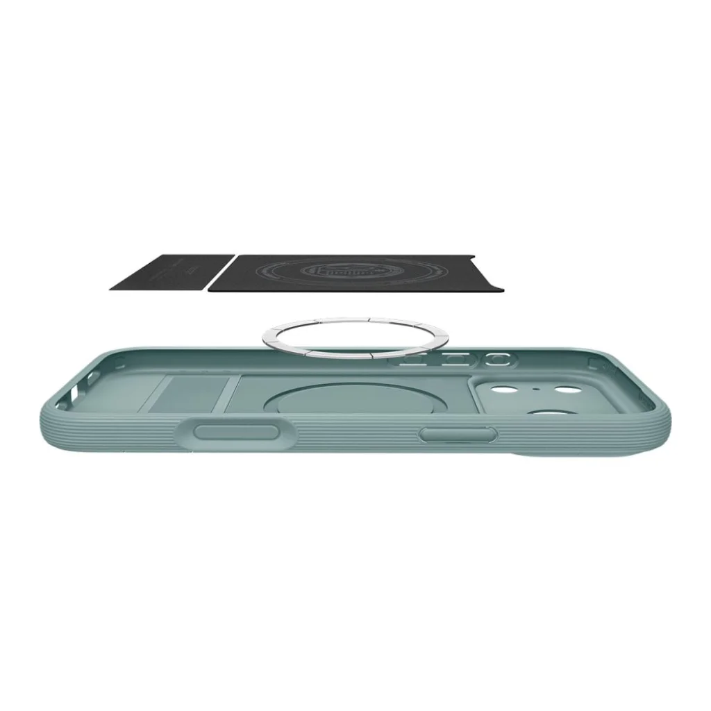 A funkcionális Spigen Parallax "S" MagSafe tok állvánnyal tökéletesen ötvözi a stílust és a praktikumot azok számára, akik masszív védelmet keresnek okostelefonjuk számára. Magas minőségű TPU anyagból készült, amely rugalmasságot és könnyű felhelyezést biztosít, emellett megbízható védelmet nyújt az esések és karcolások ellen.