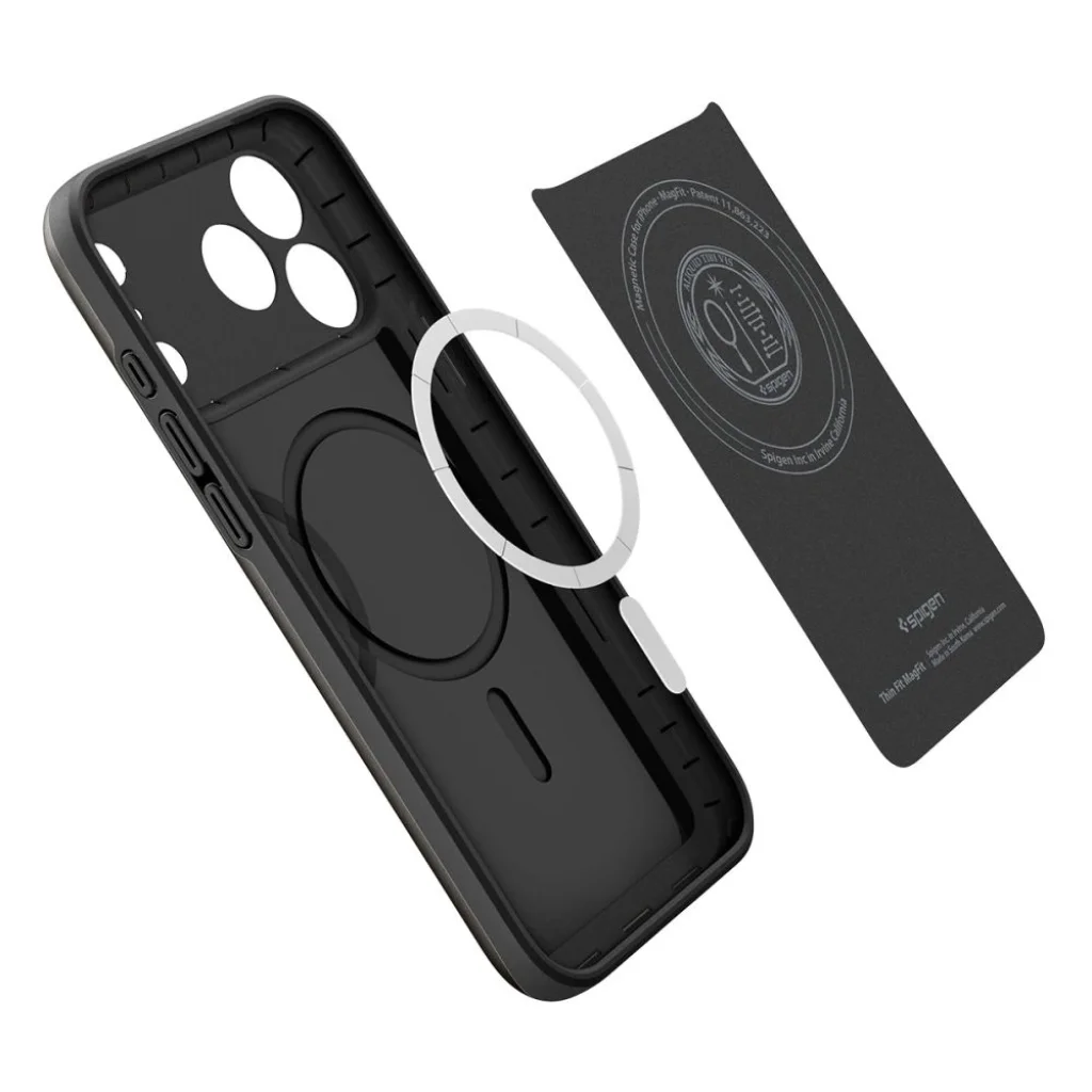 A Spigen Thin Fit Mag tok egy ultravékony és könnyű burkolat, amelyet a minimalizmust és a teljes funkcionalitást értékelő felhasználók számára terveztek. A beépített mágneses MagSafe gyűrű biztosítja a tökéletes illeszkedést a MagSafe kiegészítőkhöz, valamint a gyors és stabil töltést anélkül, hogy le kellene venni a tokot.