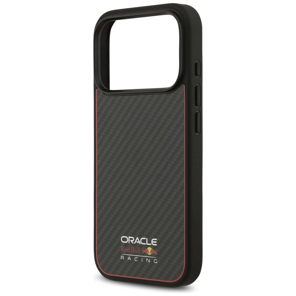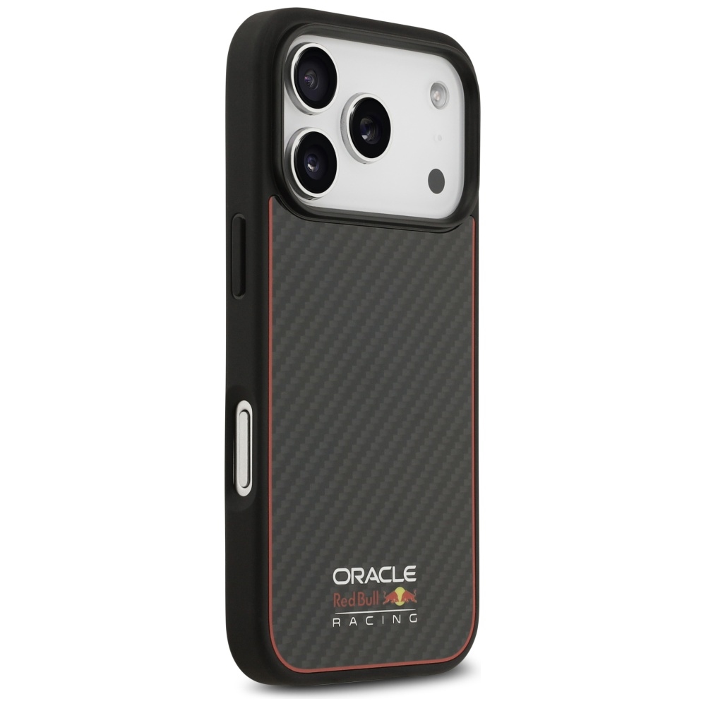 Egyedülálló dizájn és kiváló minőség: A Kevlar Logo Matt MagSafe tok tartós aramid szálból (Kevlar) készült, melyet kiemelkedő szilárdság és sportos jelleg jellemez. A karcsú konstrukció nem növeli meg a telefon méreteit, megőrizve annak elegáns kinézetét és felhasználói kényelmét. A dinamizmust hangsúlyozza a piros vonal a széleken, valamint a fekete kamera keret és gombok, amelyek kiegészítik az egységes, modern dizájnt. Az összképet a legendás Oracle Red Bull Racing logó teszi teljessé, mely az eredetiséget és a kiemelkedő minőséget igazolja.
