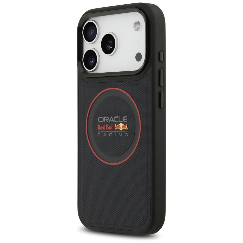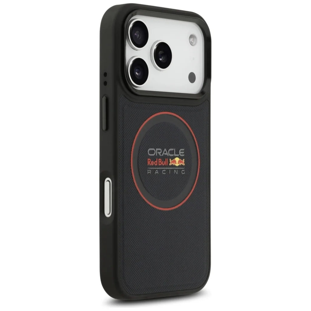 A Mesh Piros Gyűrű & Fém Gombok MagSafe tok gondosan válogatott anyagokból készült: tartós polikarbonátból (PC), rugalmas TPU-ból és kiváló minőségű öko-bőrből. Ez a kombináció nemcsak kiváló védelmet biztosít telefonjának, hanem egyedülálló, luxus megjelenést is kölcsönöz. A kollekcióra jellemző élénk piros gyűrű dinamikus és sportos karaktert ad a toknak, míg a hátoldalon elhelyezett Red Bull márka logója a legmagasabb minőség és hitelesség szimbóluma. Ez a tok a luxus, a funkcionalitás és a modern technológia harmonikus ötvözete.