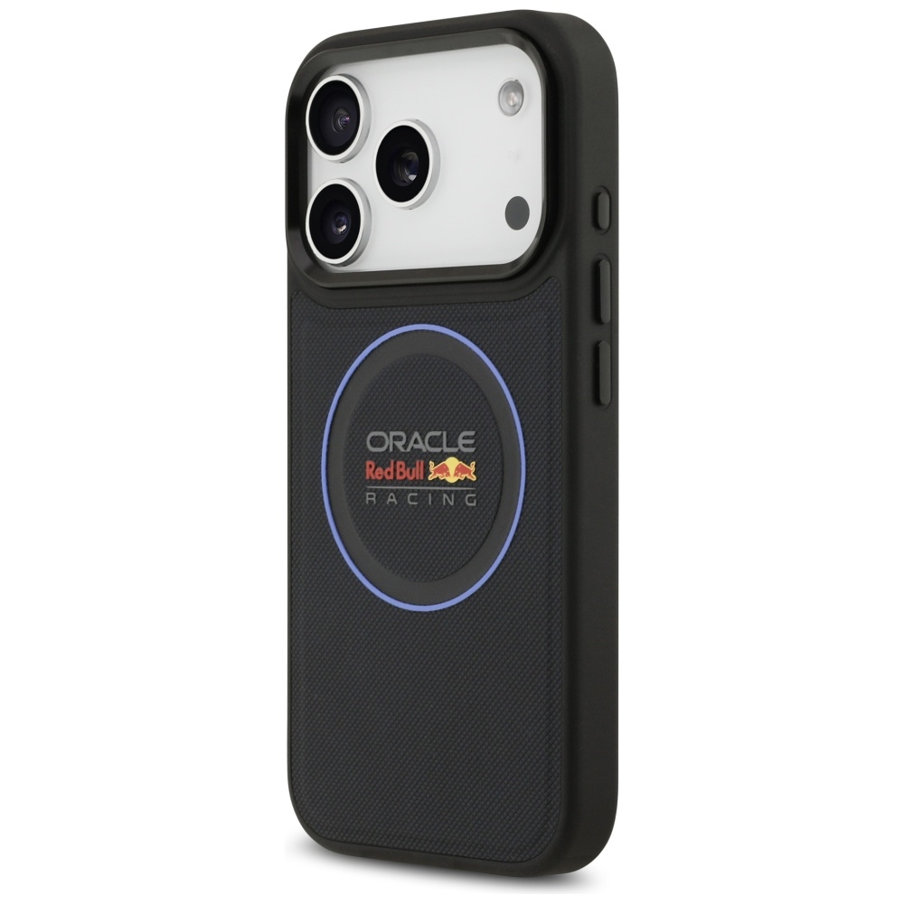Egyedülálló dizájn és kiváló minőség: A Meshed Kék Gyűrű & Fém Gombok MagSafe tok polikarbonátból és TPU-ból készült, és magas minőségű ökobőrrel van bevonva, amely érdekes textúrával rendelkezik, és nemcsak kiváló telefonvédelmet, hanem stílust is nyújt. A kollekció jellegzetessége a kék gyűrű, amely hangsúlyozza a tok sportos karakterét. A termék hitelességét a Red Bull logó erősíti meg, amely a legjobb minőséget szimbolizálja. Ennek a kollekciónak a tokjai a luxus, a funkcionalitás és a modern technológia kombinációja.