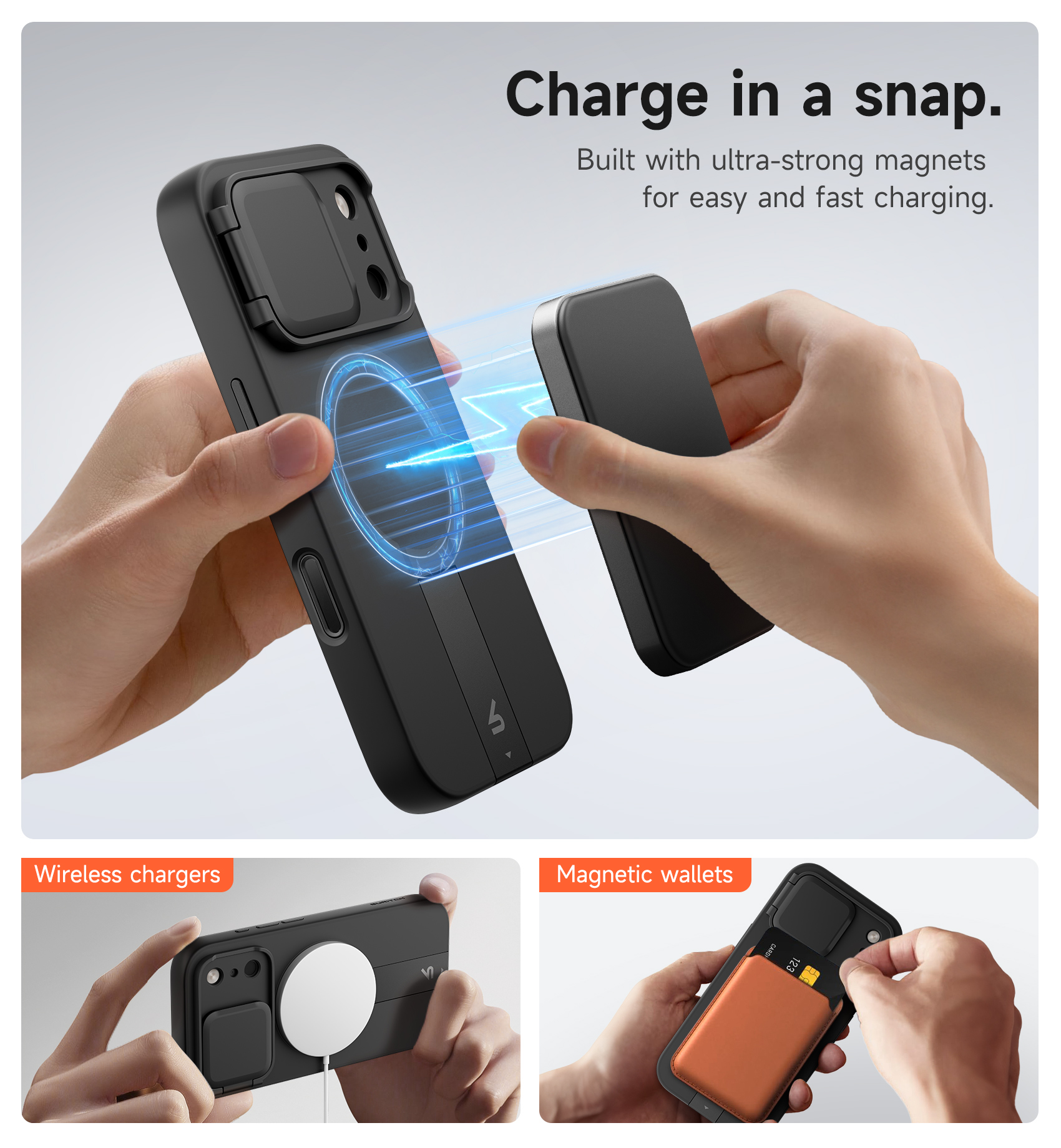 Élvezze a villámgyors és egyszerű töltést az ultra-erős mágnesekkel integrált MagSafe funkciónak köszönhetően. A tok tökéletesen illeszkedik a MagSafe vezeték nélküli töltőkhöz és egyéb mágneses kiegészítőkhöz, például mágneses pénztárcákhoz vagy autós tartókhoz. A Suritch tok biztos fogást garantál, megakadályozva, hogy a telefon leeszen a töltőről vagy az autós tartóról, ellentétben más, gyengébb megoldásokkal.