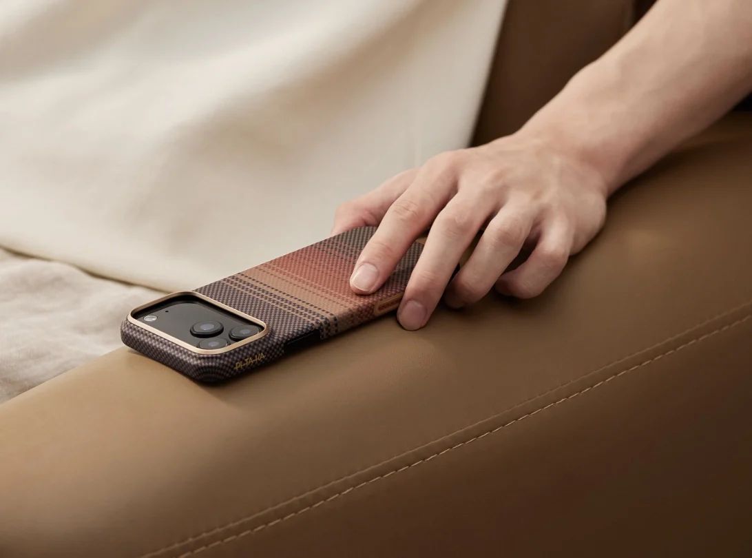 A PITAKA gondoskodott arról, hogy az Ultra-Slim tok minden részlete tökéletesen legyen kidolgozva. Precíz kivágások biztosítják a könnyű hozzáférést a gombokhoz és a portokhoz, míg a kamera körüli emelt élek megvédik a lencséket a felületekkel való érintkezéstől. Az aramid szálból készült tartós szerkezet jellegzetes szövésmintával rendelkezik, amely modern és elegáns megjelenést kölcsönöz a toknak. Ebben a kiadásban a dizájn egy különleges Naplemente · Holdkelte motívummal van díszítve, amelyet a naplementéből a holdkeltébe való átmenet inspirált, és egyedi karaktert ad a toknak. A tervezést az új márkalogó egészíti ki, amely finoman integrálva van a dizájnba. A texturált felület javítja a fogást, miközben kiemeli a prémium osztályú stílust.