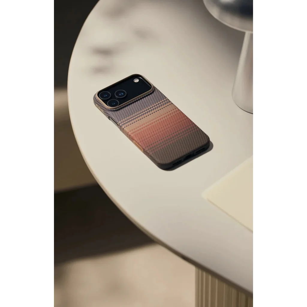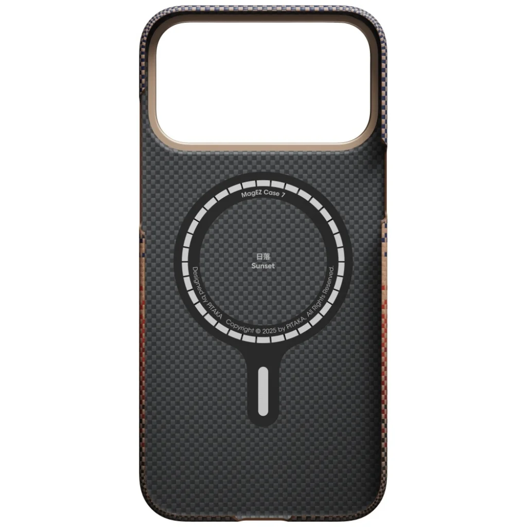 Műszaki adatok: Márka: PITAKA Sorozat: Ultra-Slim Típus: Kemény tok Anyag: Aramid szál / Fusion Weaving technológia Szín: Naplemente Kompatibilitás: iPhone 17 Pro Töltés: MagSafe és a vezeték nélküli töltéssel kompatibilis.