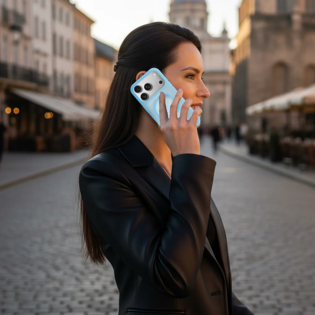 A minimalist matte-finish case that is fully semi-transparent – both the sides and the back. The hybrid build combines flexible TPU sides with a more rigid PC back panel, delivering comfortable handling and reliable everyday protection. A built-in magnetic ring ensures compatibility with MagSafe accessories.