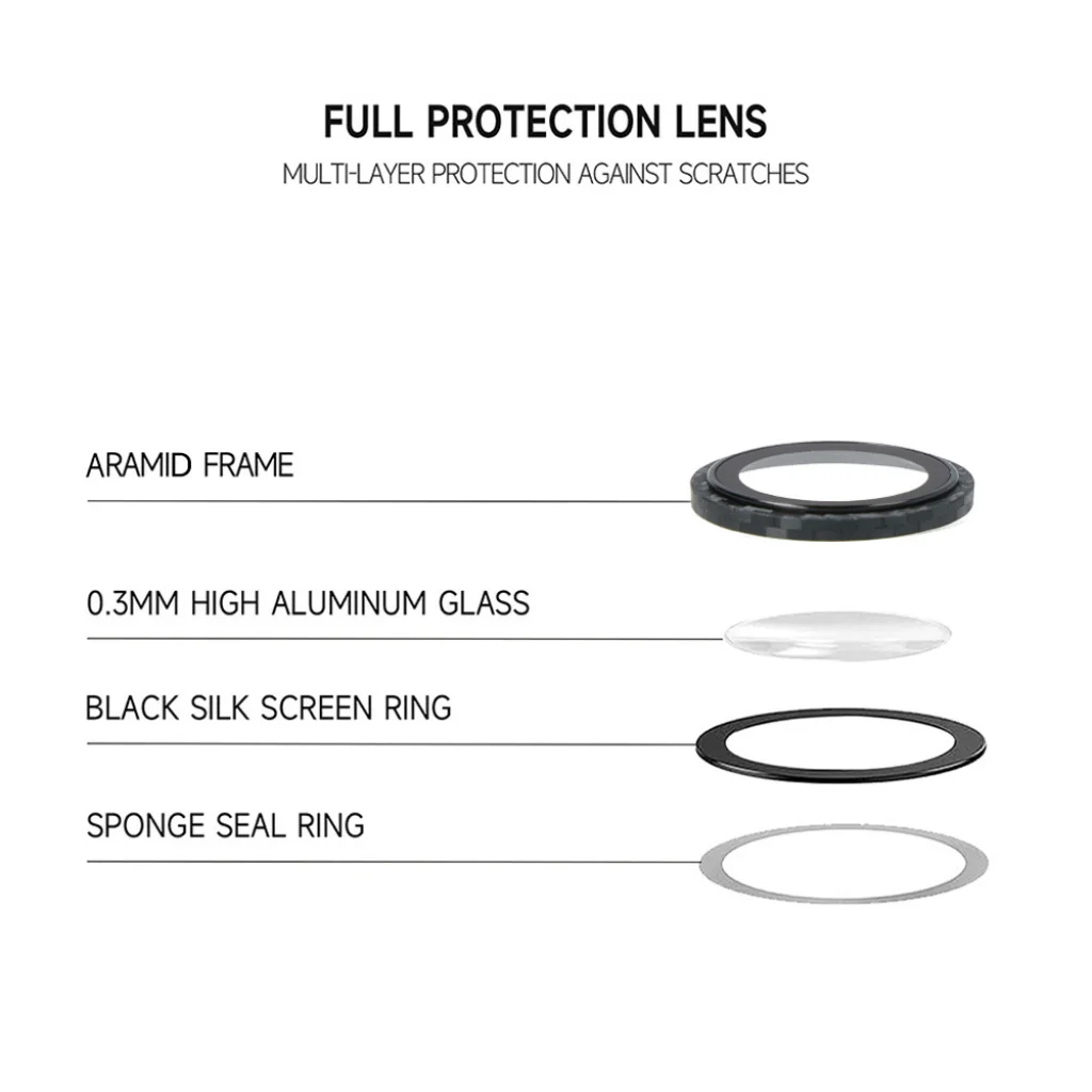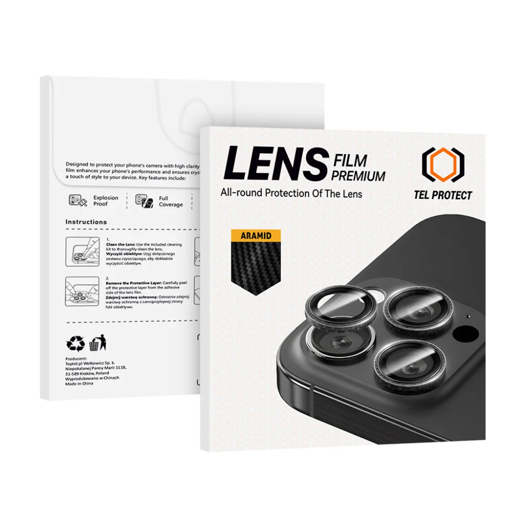 Tel Protect 3D Lencse Edzett Üvegfólia a Kamerára Kiváló Kamera Védelem -3D Aramid Keret – Megerősített alumínium keret biztosítja az ütésekkel és karcolásokkal szembeni ellenállást.