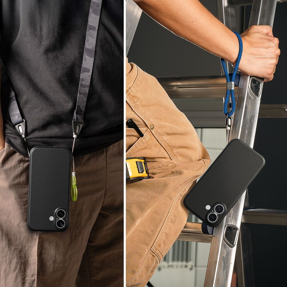 A tok matt, szemcsés felülete nem csupán esztétikus, hanem rendkívül praktikus is. Csúszásgátló tulajdonságainak köszönhetően stabil fogást biztosít, minimalizálva a véletlen kiesés kockázatát. A magas tapadás és a kényelmes ergonómia hosszú távon is komfortos használatot garantál, miközben az elegáns fekete szín megőrzi az iPhone 17 kifinomult megjelenését. A tok továbbá kialakított rögzítési pontokkal rendelkezik pántok és zsinórok számára, így még nagyobb biztonságot és hordozhatóságot biztosít, akár nyakban, akár csuklón viselve készülékét.