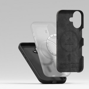 Ez a prémium tok a Ringke mérnöki precizitásának jegyében született, egy innovatív, többrétegű szerkezettel. Külső rétege puha, folyékony szilikonból készült, amely kellemes tapintású és kiváló fogást biztosít. Belül egy tartós polikarbonát alapréteg garantálja a strukturális integritást, a legbelső réteg pedig egy finom, velúr hatású bélés, amely megóvja az iPhone 17 hátlapját a karcolásoktól és a portól. Ez a gondosan megválasztott anyagkombináció garantálja a tartósságot, miközben a tok ultrakönnyű és hihetetlenül vékony marad, alig növelve az eszköz méretét vagy súlyát. Ergonomikus kialakításának köszönhetően stabilan és biztonságosan illeszkedik a kézbe.