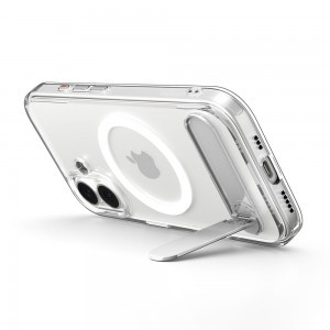A Spigen Ultra Hybrid S kiemelkedő előnye a diszkréten a hátlapba integrált, masszív **fém állvány (kickstand)**. Ez a praktikus funkció lehetővé teszi, hogy kényelmesen nézz filmeket, videókat, tarts videóhívásokat vagy böngéssz recepteket anélkül, hogy a telefont tartanod kellene. Az állvány stabilan tartja az iPhone 17-et **vízszintes és függőleges** pozícióban is, ráadásul több szögben is beállítható, így mindig megtalálhatod a számodra legkényelmesebb látószöget. Használaton kívül az állvány észrevétlenül simul a tok hátlapjába, megőrizve a karcsú profilt.