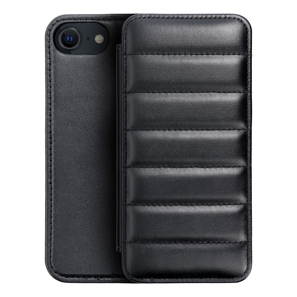 A Puffer Book tok tökéletesen kiegészíti a téli stilizációt, mivel megjelenése egy vastag, steppelt tollkabátra emlékeztet . Kellemes tapintású, ugyanakkor strapabíró anyagból készült, minden oldalról hatékony védelmet nyújt a készüléknek. A fedél kinyitása után látható két belső zseb lehetővé teszi a kártyák és bankjegyek biztonságos tárolását. A tok kényelmes állvány, amely megkönnyíti a filmnézést.