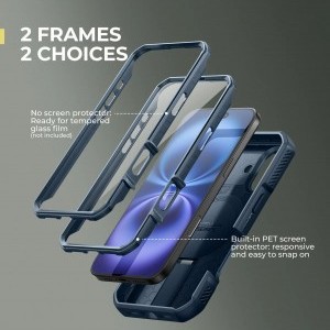 - Második keret: Lehetőséget biztosít arra, hogy saját edzett üvegfóliájával (nem tartozék) használja, ha személyre szabottabb vagy más típusú védelmet szeretne.