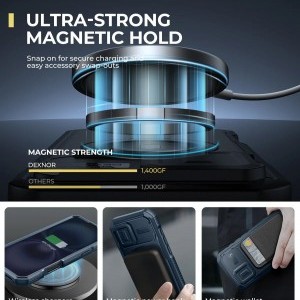 Élvezze a MagSafe technológia nyújtotta szabadságot páratlan erővel! Ez a robusztus tok akár 1400 gramm mágneses tartóerővel biztosítja, hogy telefonja szilárdan csatlakozzon az összes MagSafe tartozékhoz. Ez az erő 400 grammal meghaladja a legtöbb versenytárs termékét, garantálva a tökéletes rögzítést.
