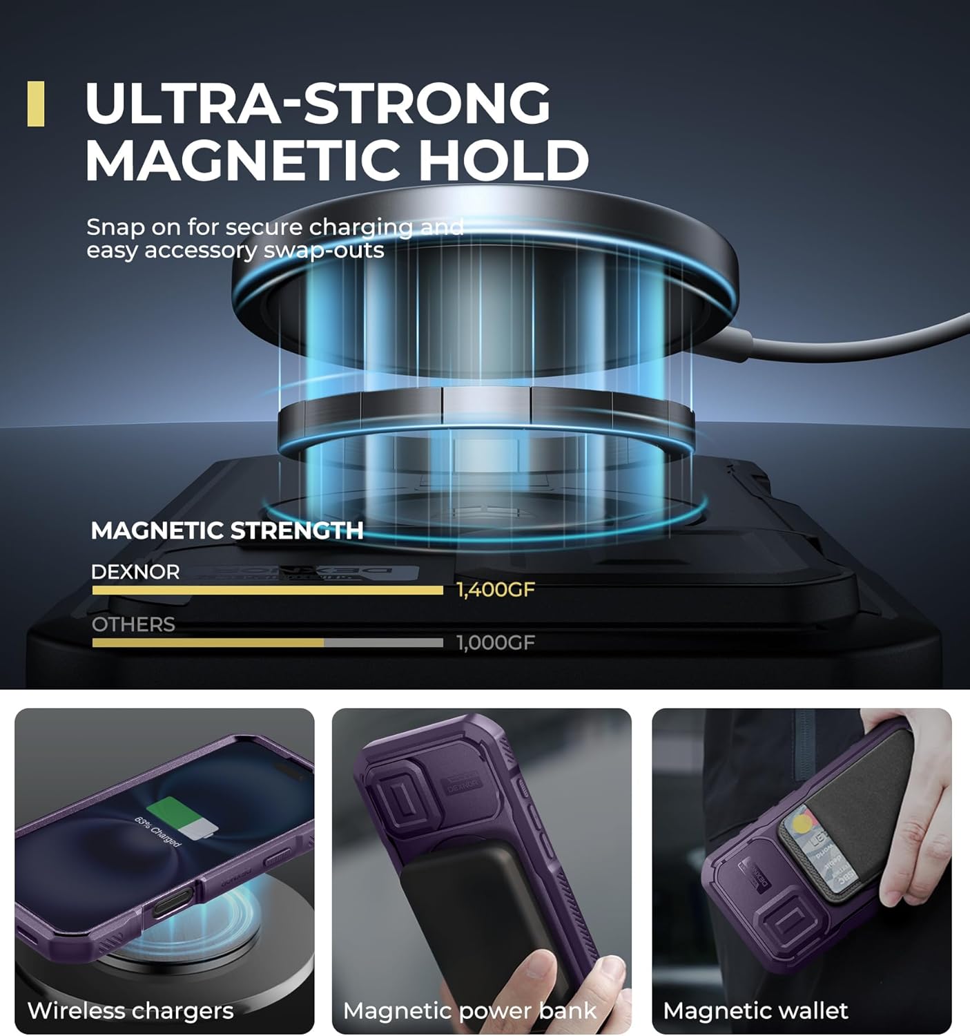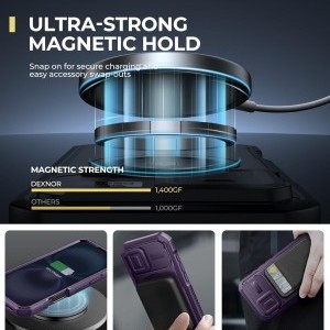 Az akár 1400g-os mágneses tartással ez a robusztus tok biztonságosan rögzíti telefonját az összes MagSafe tartozékhoz. Legyen szó vezeték nélküli töltőről, mágneses autós tartóról, mágneses power bankról vagy kártyatartóról, biztosítja, hogy telefonja a helyén maradjon és biztonságban legyen bármilyen helyzetben, könnyű kiegészítő cserét garantálva.