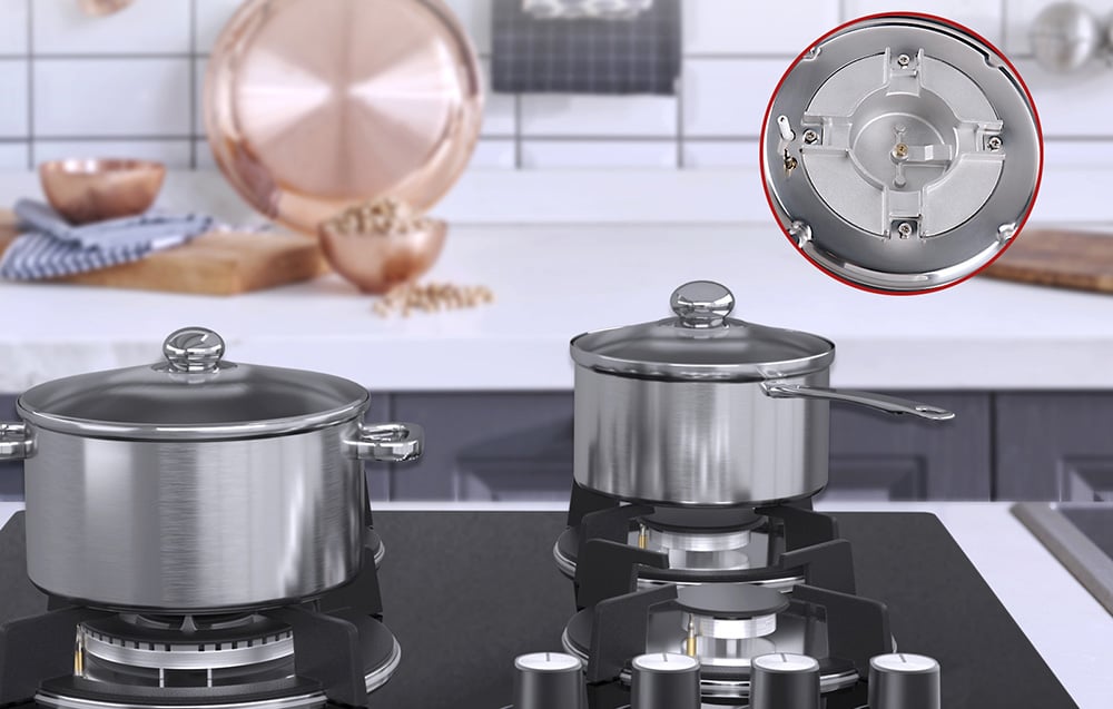 Az MGBG-604B négy különböző teljesítményű égővel van felszerelve - 1x 1 kW, 2x 1,75 kW és 1x 3,3 kW. Ez lehetővé teszi, hogy a főzési hőmérsékletet az elkészítendő étel típusához igazítsa - a kíméletes párolástól a gyors sütésig.