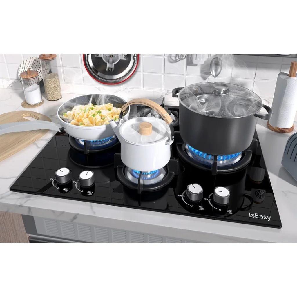 Az IsEasy MGBG-654A üveggáz főzőlap az elegáns designt ötvözi a magas funkcionalitással, négy különböző teljesítményű égőt kínál, amelyek kényelmet biztosítanak a mindennapi ételek és az igényesebb ételek elkészítéséhez egyaránt. Az átgondolt tervezésnek és a robusztus anyagoknak köszönhetően a termék nemcsak esztétikus, hanem rendkívül tartós és könnyen tisztítható is.
