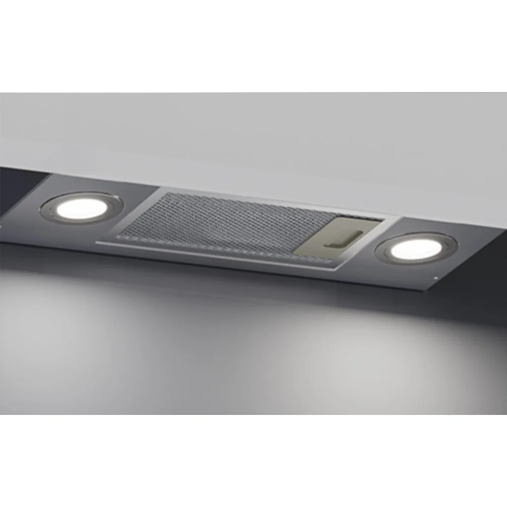 A páraelszívó minden szükséges szerelési alkatrésszel és praktikus kiegészítővel érkezik, mint a kétrészes kéményház, spirál alakú elszívócső, visszacsapó szelep, csavarok, konzolok és szénszűrők.