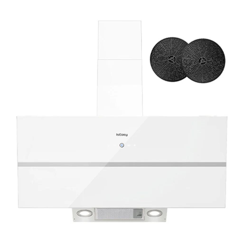 Az ISEASY TV1390D4-CC-I2 egy modern, 90 cm széles páraelszívó, amely ötvözi a kiváló teljesítményt (594,2 m³/h) az A++ energiahatékonysággal. Jellegzetes, 45°-os szögben ferde kialakítása elegáns megjelenést kölcsönöz, növeli a felhasználói kényelmet és javítja a gőzelszívás hatékonyságát. A modell intuitív érintőképernyős vezérléssel és 4 fokozatú teljesítményszabályozással rendelkezik. Késleltetett kikapcsolási funkcióval, elszívó és recirkulációs üzemmóddal is fel van szerelve. A csendes, 61 dB-es működés és a beépített LED-es világítás teszi ideálissá a mindennapi használatra.