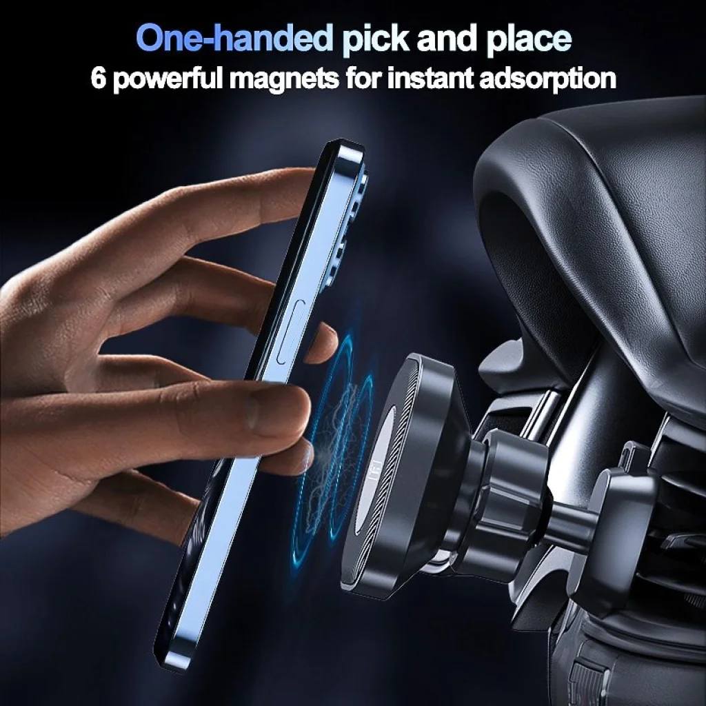 • Egyszerű, egykezes használat: A mágneses technológiának köszönhetően pillanatok alatt, egyetlen kézzel helyezheti rá vagy veheti le telefonját a tartóról. Az azonnali adszorpció gyors és biztonságos használatot garantál.