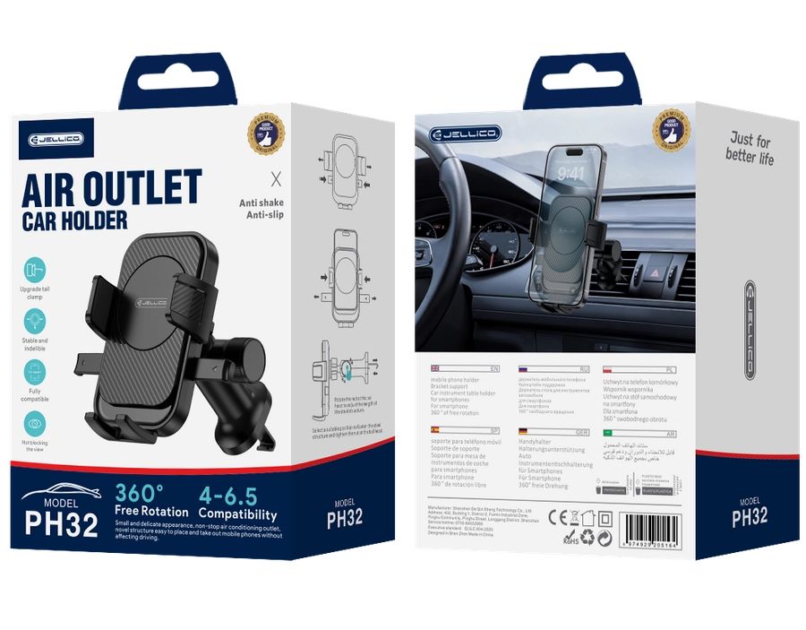 Válaszd a Jellico PH32 autós telefontartót a kényelmes, stabil és biztonságos mobilhasználatért autódban, és élvezd a zavartalan utazást!