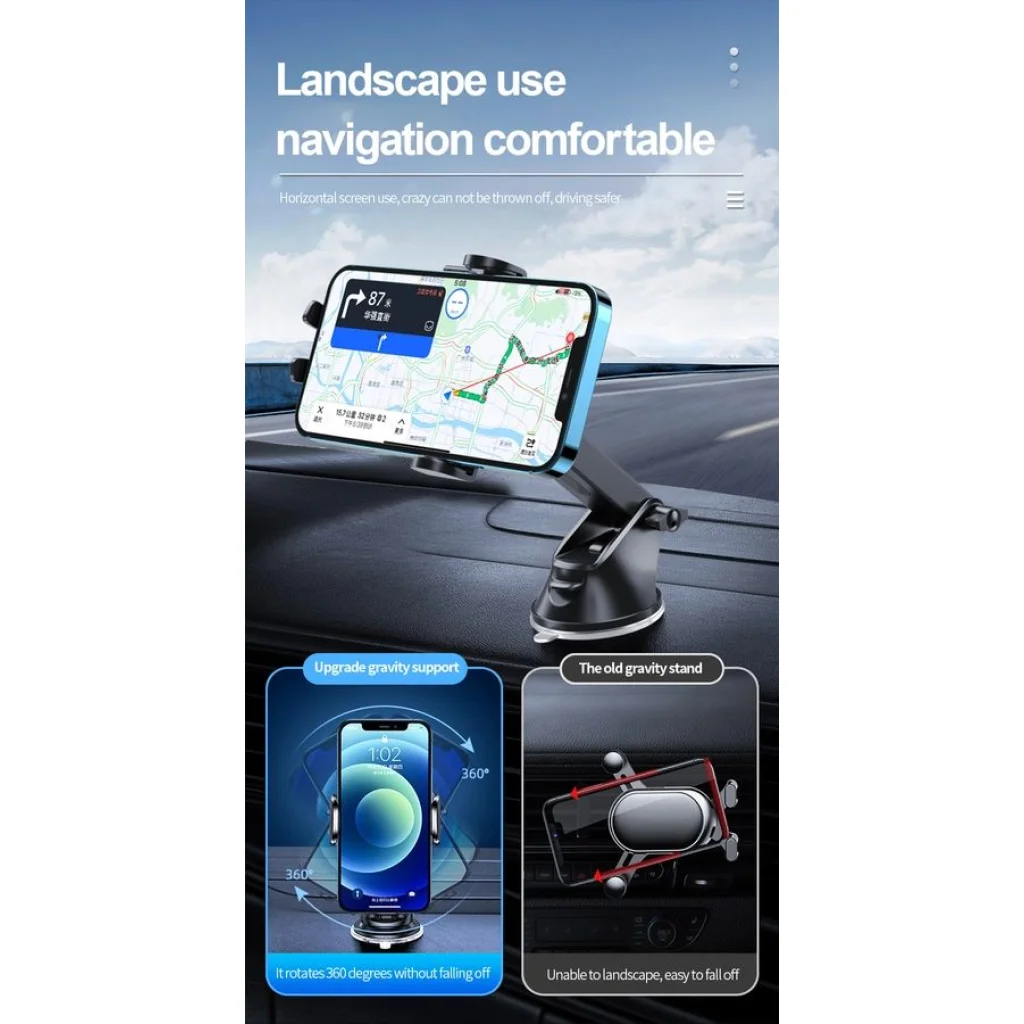 - Stabil és biztonságos tartás: A továbbfejlesztett gravitációs mechanizmus automatikusan a telefon súlyához és méretéhez igazodik, szilárdan rögzítve azt. Ezáltal elkerülhető a telefon kiesése, még extrém rázkódás esetén is.