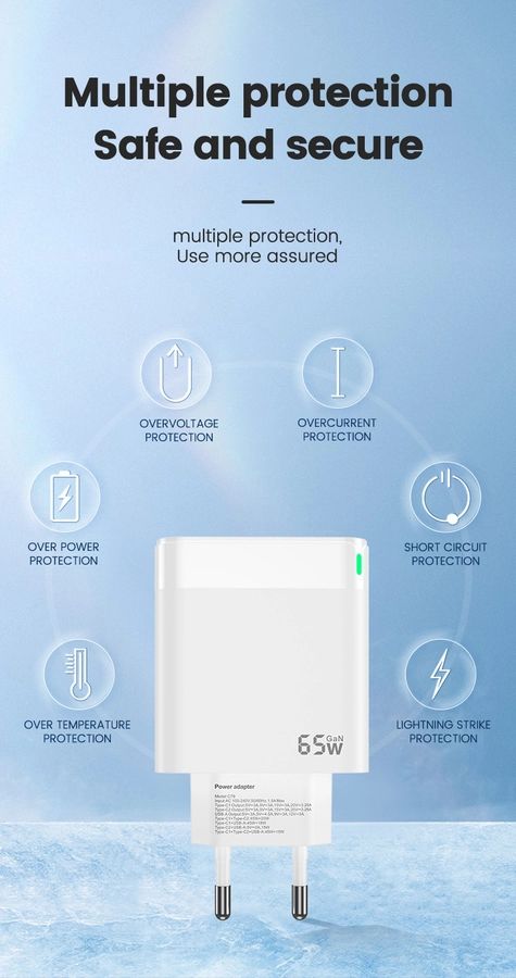 A JELLICO C79 fali töltő a legmagasabb biztonsági sztenderdeknek megfelelően készült, hogy készülékei mindig védve legyenek. A beépített intelligens chip és a GaN technológia minimalizálja a túlmelegedés kockázatát, miközben a többszörös védelmi funkciók gondoskodnak a gondtalan használatról: