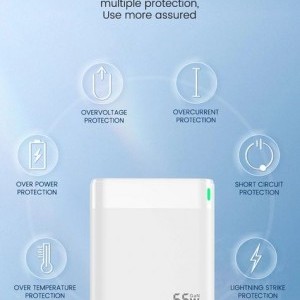 - Többszörös védelem: Beépített védelmi rendszerek óvják eszközeit a túlfeszültség, túláram, rövidzárlat, túlmelegedés, túltöltés és villámcsapás ellen.