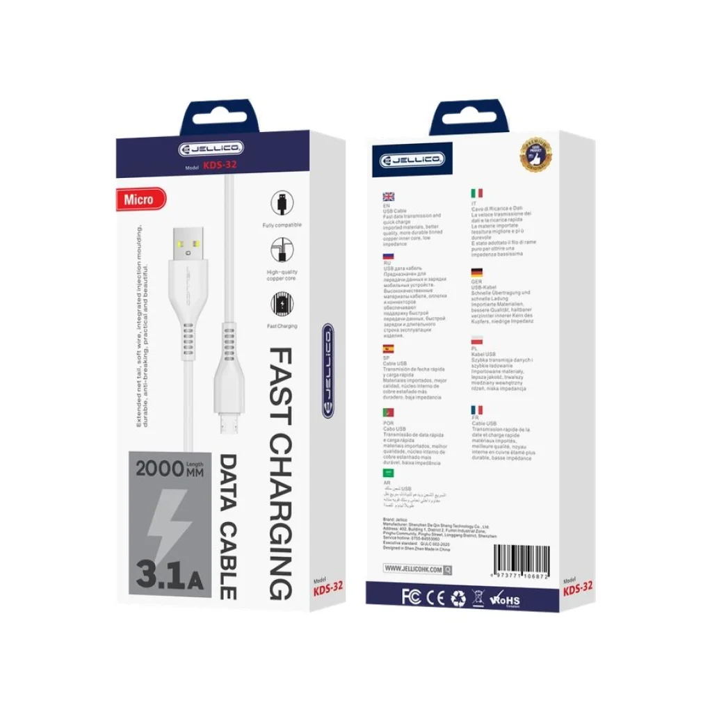 A JELLICO KDS-32 Micro USB kábel egy megbízható és nagy teljesítményű megoldás az Android okostelefonok, tabletek és egyéb Micro USB-csatlakozós eszközök gyors töltéséhez és szinkronizálásához. A 2 méteres hosszúság extra szabadságot biztosít, míg a robusztus kialakítás és a fejlett technológia garantálja a tartósságot és a hatékony működést.