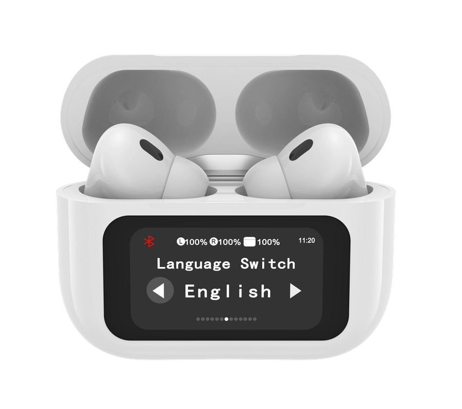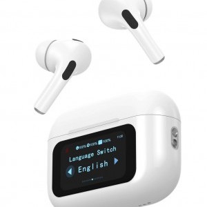 - Ez a kijelző valós időben mutatja mindkét fülhallgató (L/R) és maga a töltőtok akkumulátor töltöttségi szintjét, így sosem éri meglepetés. Emellett kényelmesen ellenőrizheti az aktuális időt, és az intelligens érintésvezérlés segítségével akár nyelvet is válthat a menüben.