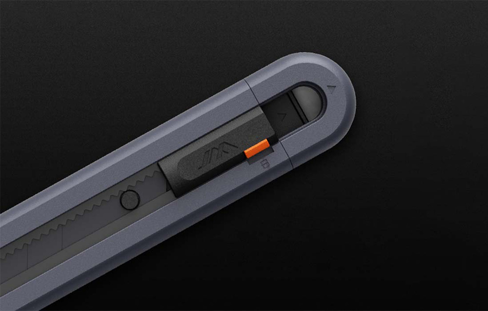 A penge szabadon kihúzható. Csak nyomja meg a gombot a penge alján, és csúsztassa fel a tetejére. Ez hasznos, amikor a kés hegye életlenné válik, vagy nagyobb pengesfelületre van szüksége, például ásványgyapot vágásakor.