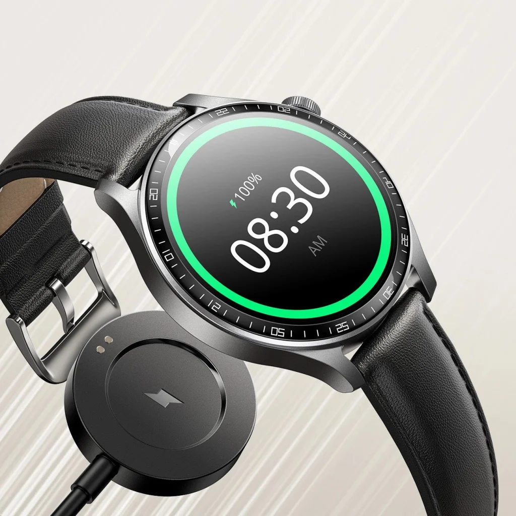 Fedezd fel az új dimenzióját a funkcionalitásnak és stílusnak a Joyroom Classic Series JR-FC2 Pro okosórával. A nagy, tiszta 1,46 colos HD kijelzője páratlan olvashatóságot és modern dizájnt kínál. A Bluetooth kapcsolaton keresztüli hívás azt jelenti, hogy beszélgethetsz anélkül, hogy elővennéd a telefonodat a zsebedből. Több mint 100 órafelület, ATM 10M vízállóság, valamint az ultra hosszan tartó akkumulátor-élettartam révén a JR-FC2 Pro alkalmazkodik az életstílusodhoz. 24/7 egészségfigyelés, beleértve a szívritmus és vér oxigénszint mérést, támogatja az aktív és tudatos életet. A mellékelt szíjak – elegáns fekete bőr és praktikus szilikon – tökéletessé teszik az eszközt bármilyen alkalomra. Válaszd a Joyroom JR-FC2 Pro-t és érezd a különbséget minden nap!