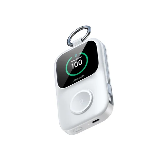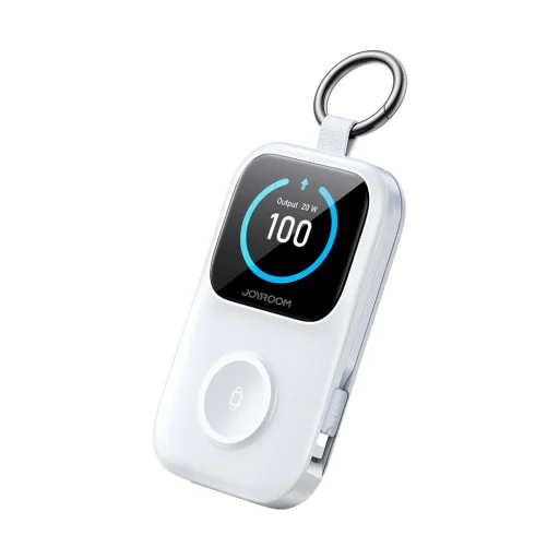 The Joyroom JR-W19 is a compact power bank designed for conveniently charging smartwatches and mobile devices. A built-in magnetic surface allows for wireless charging at up to 5W. Additional USB-C and Lightning cables enhance functionality and eliminate the need for wires. A clear digital display allows you to monitor your power level in real time. The compact design with a handle makes it easy to carry. This solution organizes charging and increases portability.