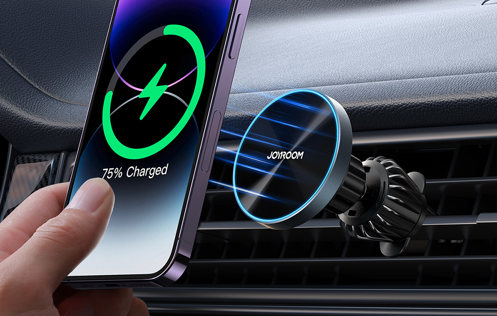 A tartó induktív töltője akár 15W teljesítményű, lehetővé téve a gyors telefonfeltöltést. A JR-ZS240 Pro modell kompatibilis az iPhone 12, 13 és 14 modellekkel – töltheti ezeket mind MagSafe tokokkal, mind anélkül. Mi a helyzet más telefonokkal? Ha okostelefonjában nincsenek beépített mágnesek, egyszerűen használjon mágneses gyűrűt.